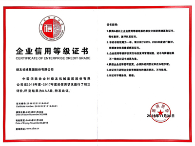 11月30日,綠友集團(tuán)被中國消防協(xié)會評定為AAA信用等級企業(yè)。