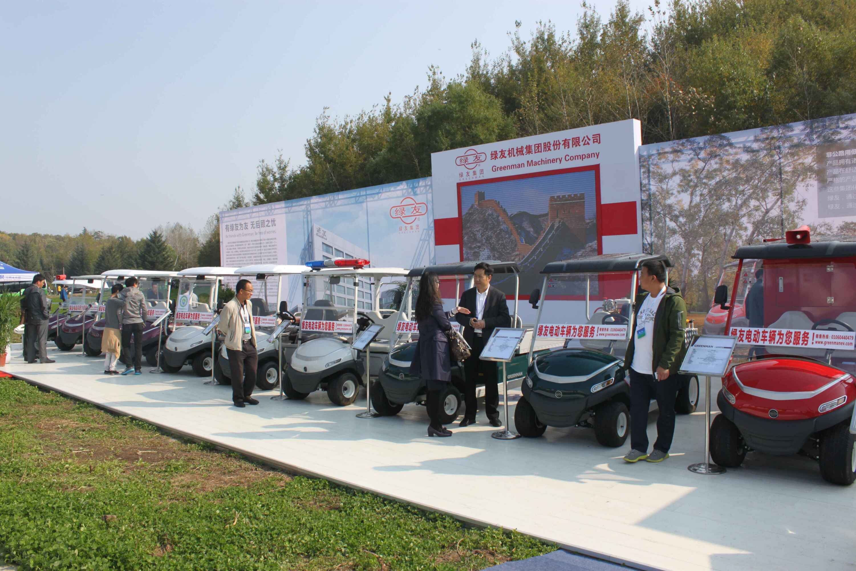 此次森林旅游節(jié)期間全國(guó)各省市設(shè)立了大型展臺(tái)展示推薦各自省份森林旅游資源和招商引資項(xiàng)目。與林業(yè)和旅游業(yè)行業(yè)密切相關(guān)的企業(yè)全方位展示公司形象和產(chǎn)品。以“圍繞綠色做文章,圍繞綠色謀發(fā)展”的綠友集團(tuán)盛裝參展,展臺(tái)面積280平方米,展品包括林業(yè)樹(shù)木處理設(shè)備、草坪養(yǎng)護(hù)設(shè)備及Greenman 全系電動(dòng)車(chē)輛登臺(tái)亮相。綠友集團(tuán)的展臺(tái)及高品質(zhì)產(chǎn)品引人駐足,蒞臨展位的各級(jí)領(lǐng)導(dǎo)仔細(xì)了解產(chǎn)品特性和功能,并在展臺(tái)表達(dá)了合作意向。全國(guó)政協(xié)副主席羅富和、國(guó)家林業(yè)局局長(zhǎng)張建龍、吉林省副省長(zhǎng)隋忠誠(chéng)等領(lǐng)導(dǎo)蒞臨綠友展臺(tái),綠友集團(tuán)高管李玉潔詳細(xì)向羅主席等領(lǐng)導(dǎo)介紹了綠友集團(tuán)和主要產(chǎn)品,羅主席等領(lǐng)導(dǎo)對(duì)綠友集團(tuán)對(duì)于綠色產(chǎn)業(yè)的支持表達(dá)了肯定,對(duì)綠友集團(tuán)堅(jiān)持走自主研發(fā)生產(chǎn)之路表示贊許和鼓勵(lì)