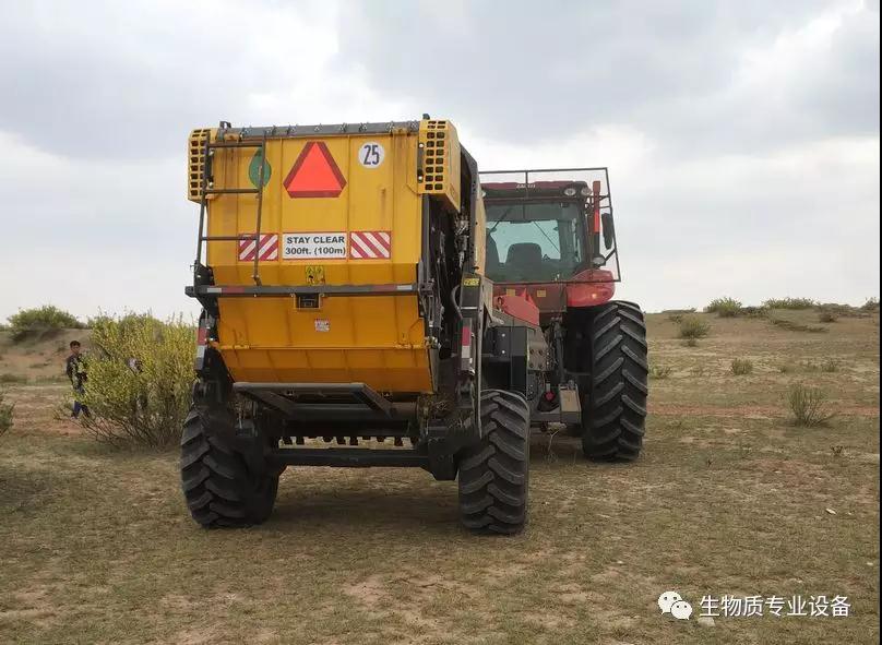 在為期4日的演示過程中,設(shè)備表現(xiàn)完美,超乎想象。在拖拉機的牽引下,一行行的檸條被設(shè)備吃進(jìn)肚子,消化一會便后拉出個大大的“金粑粑”。