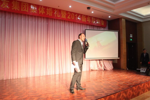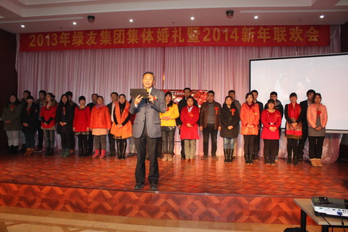 12月29日,“2013年綠友集團集體婚禮暨2014年元旦聯(lián)歡會”在總部所在地附近的德濟緣酒店舉辦,總部人員和北京綠友園林、北京工廠的全體人員參加了活動;在李敏總裁的關心下,會務組人員還特別邀請了8名退休員工前來參加活動。
