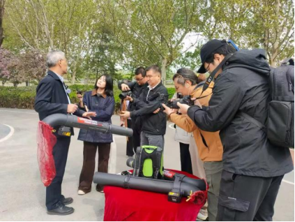 綠友機(jī)械集團(tuán)股份有限公司李敏總裁在北京市園林局、北京市園林科學(xué)院等單位舉辦的楊柳飛絮治理新聞發(fā)布會(huì)上接受央視、北京電視臺(tái)、環(huán)境報(bào)、科技日?qǐng)?bào)、新京報(bào)等多家媒體采訪,介紹綠友研發(fā)的楊柳飛絮吸絮機(jī),受到廣泛關(guān)注與好評(píng)。