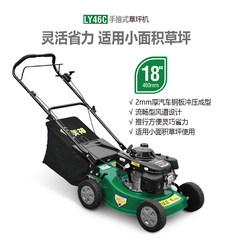 18寸草坪修剪機,適合小面積草坪的修剪作業(yè):如社區(qū),單位,學(xué)校,廣場等場所。