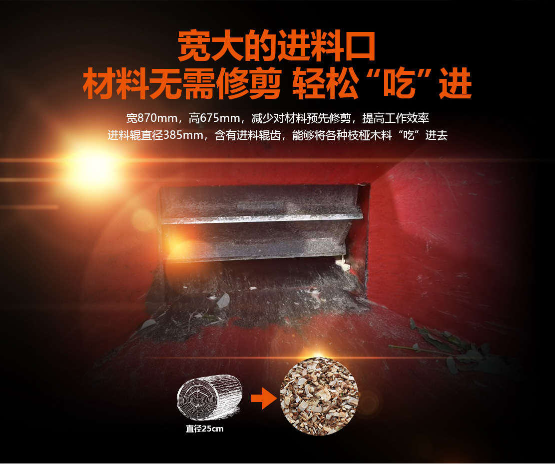 25cm全自動(dòng)液壓進(jìn)料粉碎機(jī),選用49馬力環(huán)保柴油發(fā)動(dòng)機(jī)。