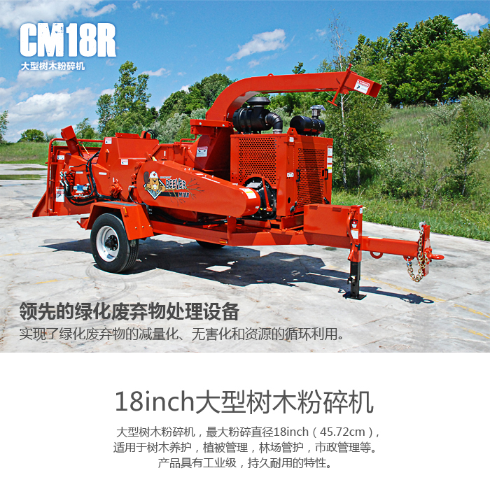 大型樹木粉碎機(jī),最大粉碎直徑18inch(45.72cm),適用于樹木養(yǎng)護(hù),植被管理,林場(chǎng)管護(hù),市政管理等。產(chǎn)品具有工業(yè)級(jí),持久耐用的特性。